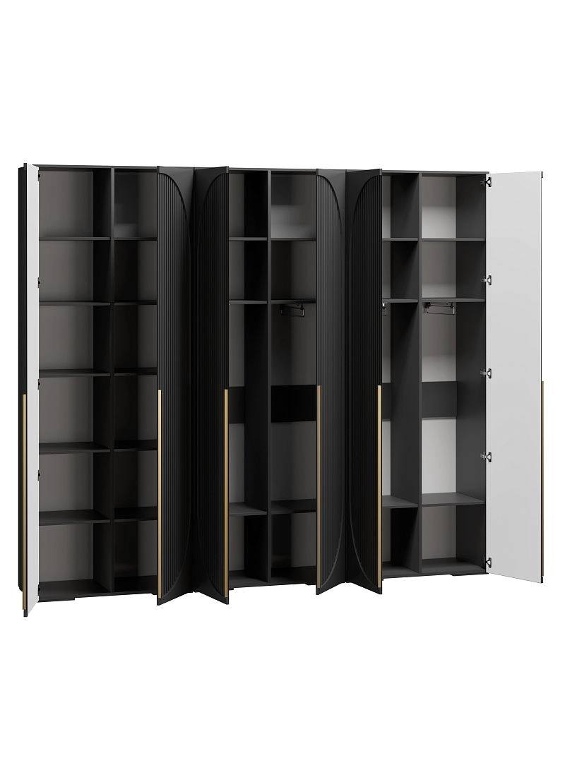 Комплектация: наполнение: 2 отделения Б (5 полок) / 4 отделения П (полка под шляпы + полка + выдвижной кронштейн + полка под обувь)