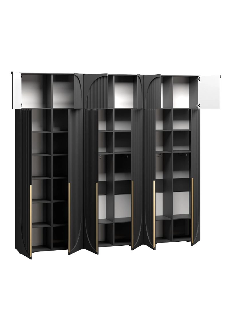Размер отделений в каждом наполнении изготавливается по стандарту фабрики и может отличаться от фото. Если вам необходимы определенные размеры отделений в наполнении согласуйте это в чате с менеджером. При высоте шкафа 230-270 см антресоль слитная, 280-310 см съемная.