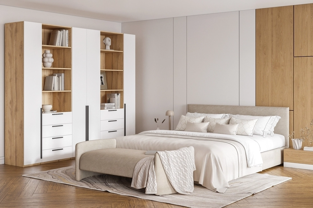 Шкаф распашной Хейсон-4 Белый Дуб Золотистый
