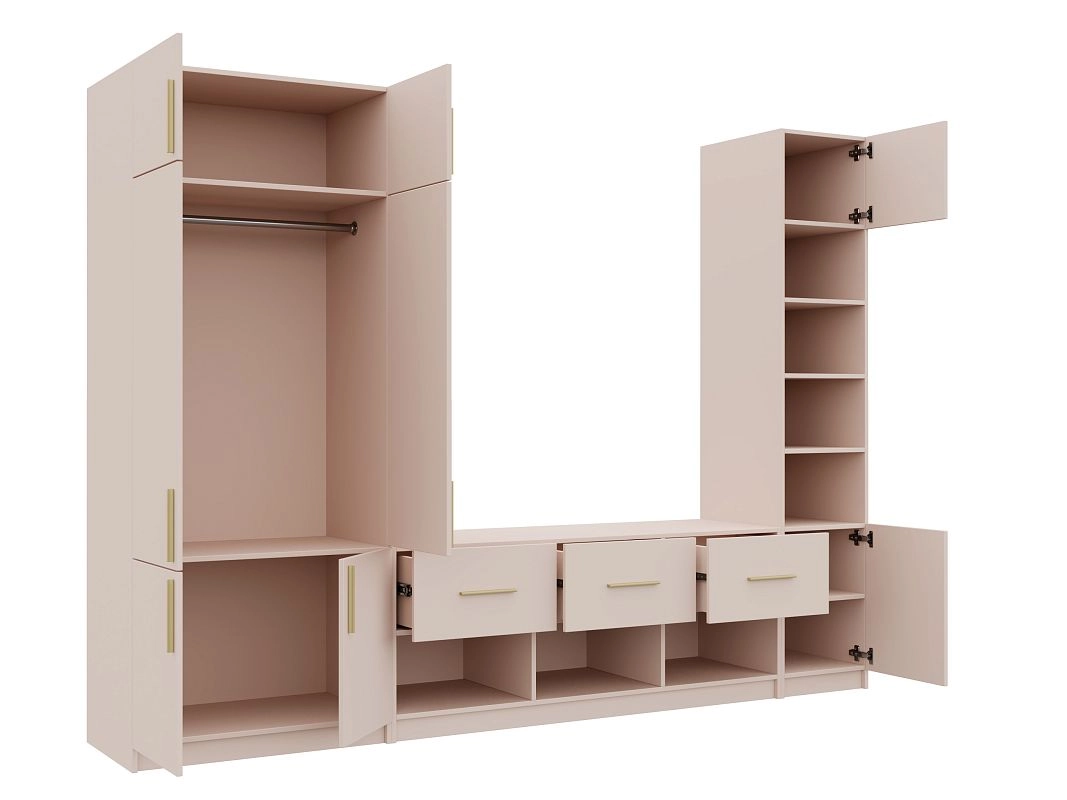 Петли без доводчиков. Направляющие шариковые 100% выдвижения без доводчика. Штанга металл Ф25мм. Ручки: Ручка CPA1 мебельная накладная м.ц.160 мм L 188мм,алюминий золото RCPА1A.188GADI, Ручка CPA1 мебельная накладная м.ц. мм L 1000мм,алюминий золото RCPА1A.1000GADI